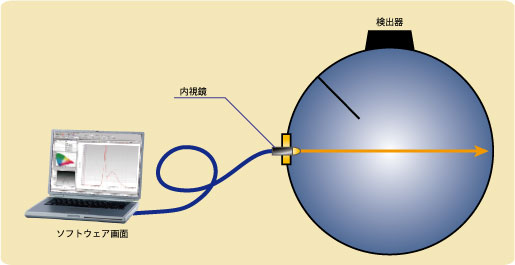 内視鏡測定のアプリケーションには4インチ程度~の中型積分球が最適です。積分球の外部ポートに、内視鏡からの照射光を積分球に入射する事で容易に測定可能です。