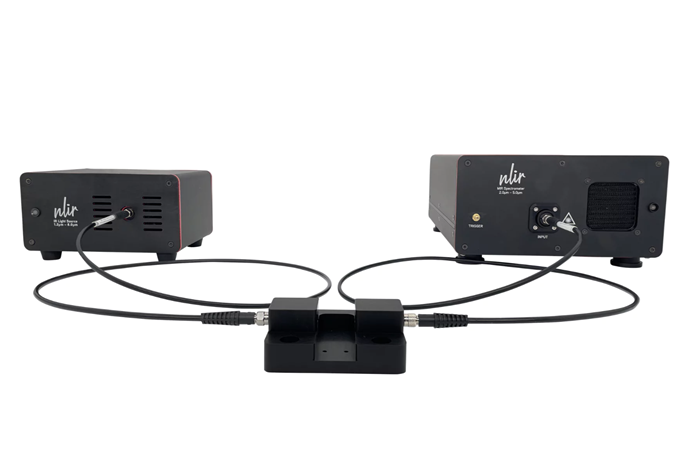 中赤外域用透過測定システム BUNDLE-TR-INTERFACEは、ファイバ入力型高速中赤外分光器BUNDLEシリーズと赤外域用の透過測定用サンプルホルダTRANMISSION interface、そしてファイバ出力型中赤外域用光源FIBERを組み合わせた、2.0~5.0μmの中赤外域に対応した透過用分光器一式です。